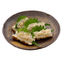 ◆ 竹輪や蒲鉾にはさみ、大葉を添えておつまみに